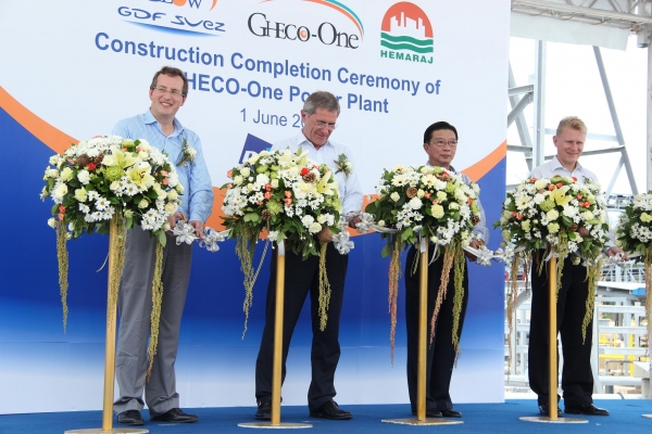 In the picture : From left to right are Mr. Willem Van Twembeke, President & CEO of IPR – GDF SUEZ; Mr. Gerard Mestrallet, Chairman and CEO of GDF SUEZ; Mr. Thongchai Srisonburananont, Chairman of the Executive Committee of Hemaraj; and Mr. Esa Heiskanen, CEO of Glow Group, who joined a ceremony to mark an achievement of the key milestone of GHECO-One project.